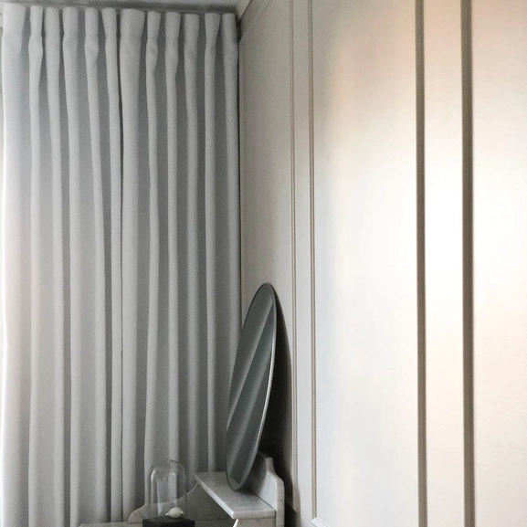 The curtain features Hasta’s multi-purpose curtain tape, which means that you can set up the curtain in four different ways – the modern wave setup for hotel waves, pleated curtain with deep pleat hooks, beautifully gathered curtain with wave/rufflette hook and directly onto the rod using ready to hang loops.