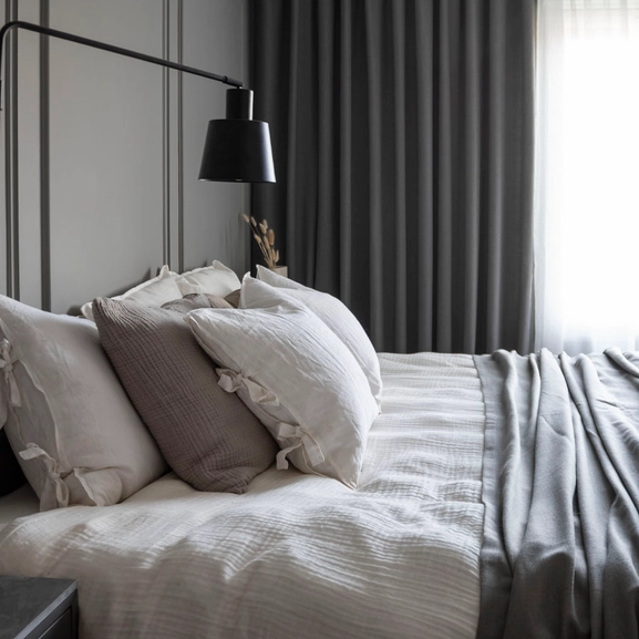 - Hang with rufflette hooks on rod or rail for perfect hotel waves or use deep pleat hooks for beautiful pleats
