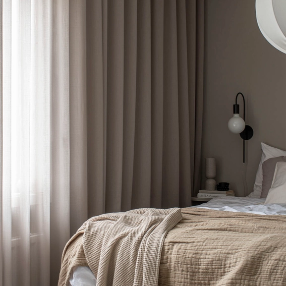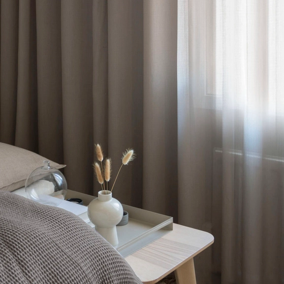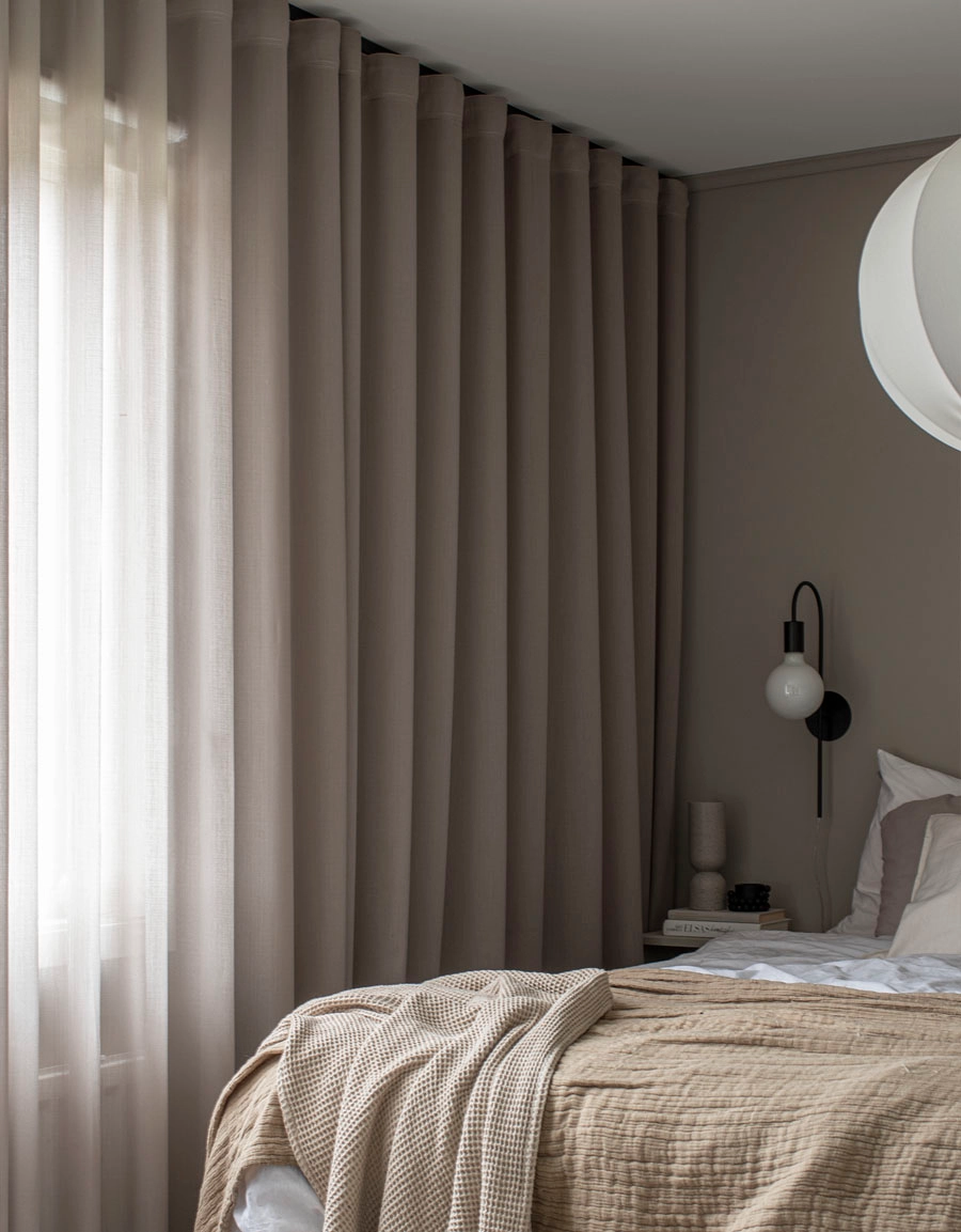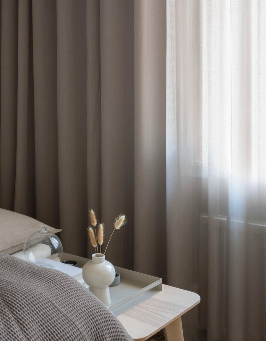 Semi-transparent curtain with beautiful structured fabric with a slight shimmering appearance.