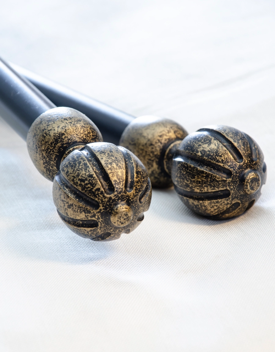 Wooden finial. Available in white gold and black good, and for rods with a diameter of 18/20 mm and 26/28 mm. Easy to thread onto the rod – no adapter required! One pair per pack.
