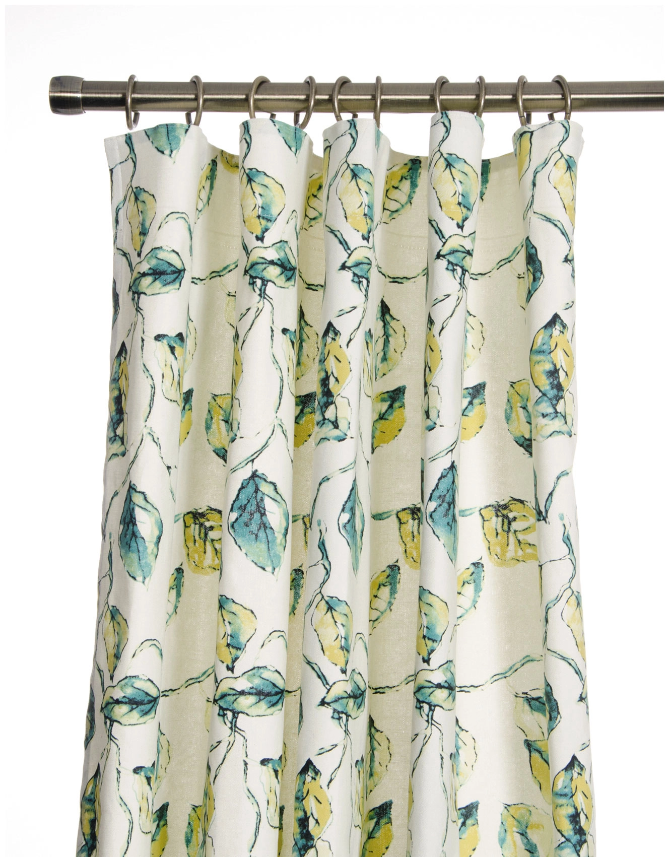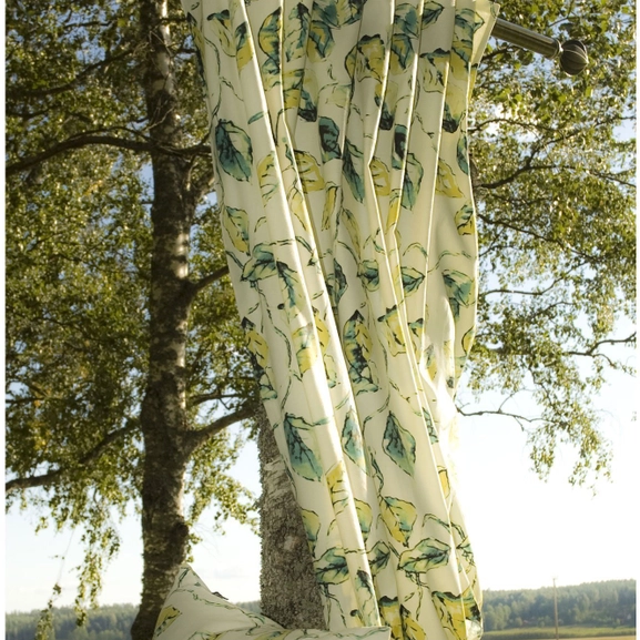 Curtain in hand-painted leaf pattern. 100% cotton. Also available as a matching pillowcase and pull-up curtain. The curtain features Hasta’s multi-purpose curtain tape, which means that you can set up the curtain in four different ways – the modern wave setup for hotel waves, pleated curtain with deep pleat hooks, beautifully gathered curtain with wave/rufflette hook and directly onto the rod using ready to hang loops.