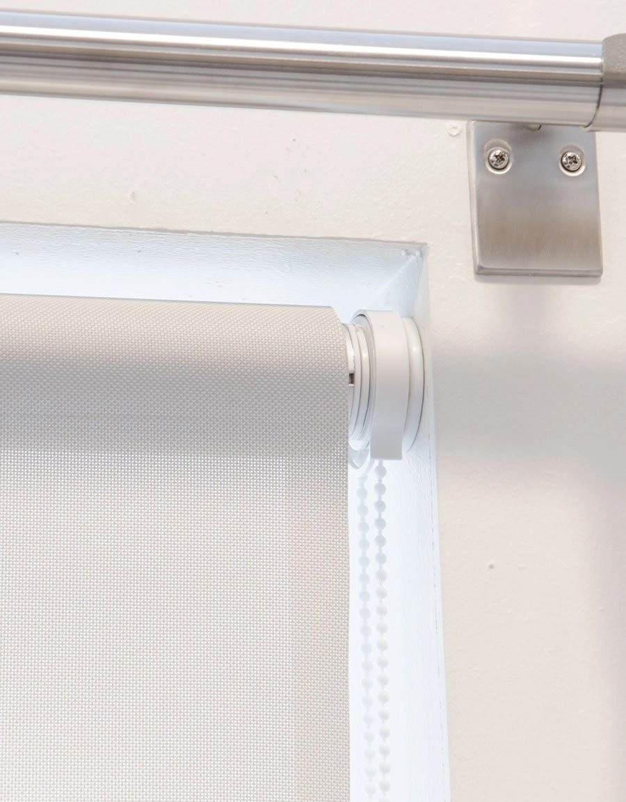 A friction-mounted roller blind that you install in the window niche without any screws! Available in white, light gray and beige. The screen roller blind that shields you from sunlight without compromising the view. Our screen roller blind appears transparent, so you don’t feel closed in when the roller blind is pulled down. It screens the light to avoid distracting glare on TV and computer screens and to prevent dazzling.