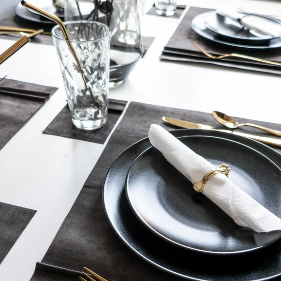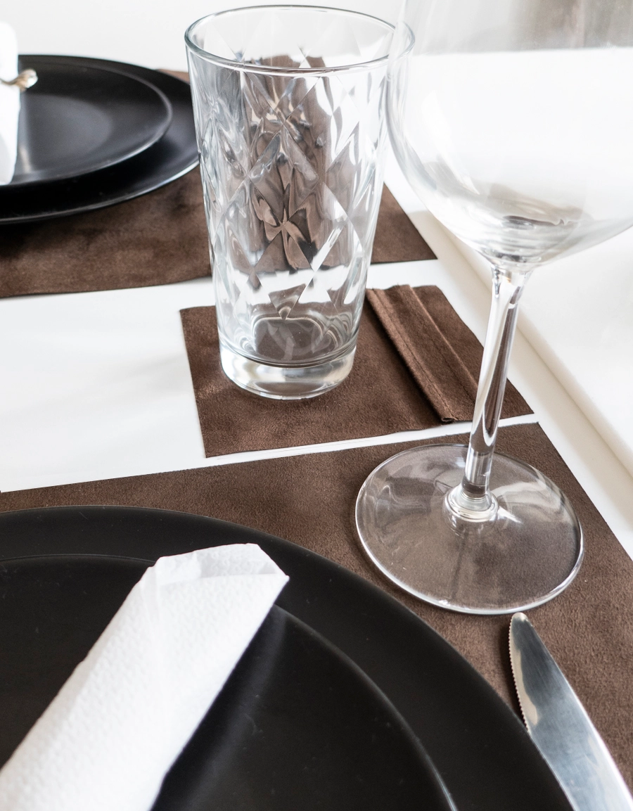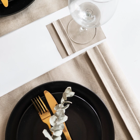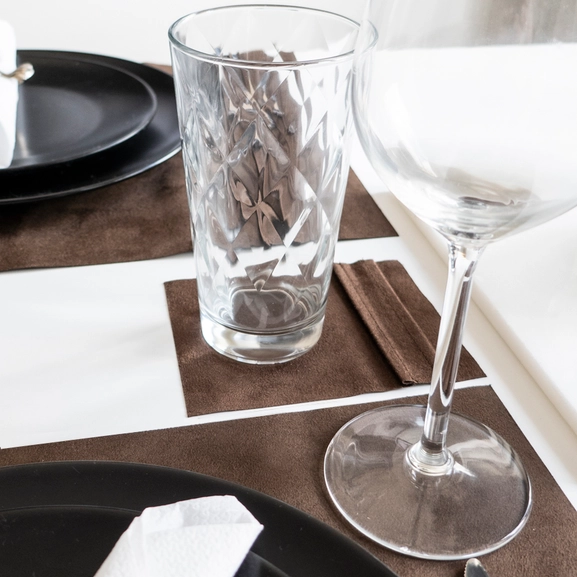 Coaster in lovely imitation suede. The pack contains 6 pcs.