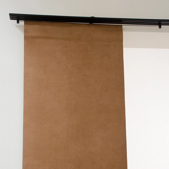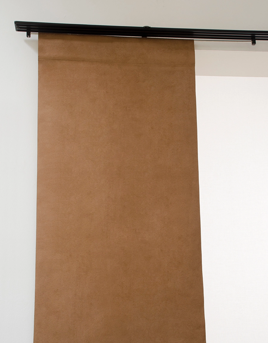 Panel curtain in a faux suede fabric.
